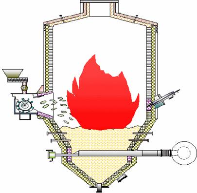 1. 流化床式通過爐內的熱積蓄媒介將熱量傳給廢物使得廢物燃燒。