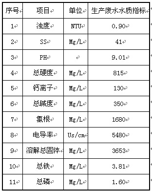 以中板廠生產過程中產生的廢水作為原水水源,主要污染物為總含鹽量(TDS)、硬度、Cl-離子、SS等,廢水中污染物含量波動較大,本設計以最惡略條件為設計條件: