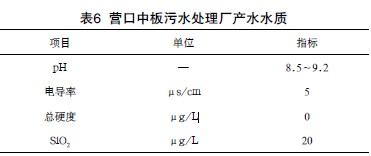 根據營口中板污水處理廠對回用水質的要求,一級反滲透后,一部分水進入二級反滲透和混床進行精脫鹽,脫鹽后的產水水質達到以下標準(見表6)。