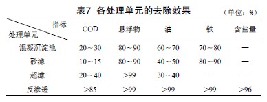 通過對實際鋼鐵廢水處理系統的運行狀況進行分析,系統各工藝單元對各污染物的去除效果見表7。