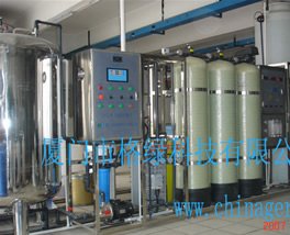 廈門格綠科技有限公司為廈門藍灣科技有限公司設計的超純水制備系統,采用預處理+RO+EDI+紫外殺菌,一方面采用反滲透和EDI除鹽確保了其出水水質達到化工行業用水要求(電阻率:≤0.5MΩ.cm ,電導率:≤2μ s/cm ),另一方面在系統末端采用紫外殺菌系統,保證了其用水安全,進一步提高了水質。