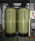內填鈉型陽離子樹脂,利用鈉離子樹脂置換去除水中結垢型的離子,如Ca2+、Ba2+ 、 Mg2+等。含有Ca2+、Ba2+ 、 Mg2+的水經過軟化系統的樹脂層時,鈉離子交換樹脂就會和水中的陽離子發生置換反應。鈉離子被置換出來,樹脂和鈣、鎂等離子結合,碳酸根和碳酸氫根與鈉離子結合形成碳酸鈉、碳酸氫鈉等不易結垢的物質,降低了原水的硬度。樹脂置換陽離子的總量是一定的,經過一定時間樹脂交換飽和后,需要用飽和氯化鈉濃液來置換。