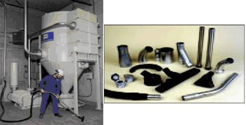 Syvac Central Vacuum Cleaning Systems 高靜壓真空吸塵袋式除塵器,以吸塵軟管連結至機體中心,利用馬達驅動離心力,將吸收的粉塵沉降分離。食品業、物料輸送、包裝、實驗室均可運用來收集粉塵廢料。另有多種管路及吸頭附件可供選配。