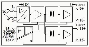 _PR-512是24VDC或220VAC供電,輸入、輸出、電源、通道間全隔離,是熱電偶信號隔離器中的一種。_PR-512將K、B、S、R等熱電偶溫度信號,隔離、轉換為兩路相同或不同的直流電流、電 壓信號,實現不同設備同時采集控制。