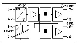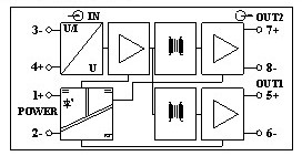 _G-1131,24Vdc供電,輸入、輸出、電源、通道間全隔離,一入兩出,超薄外殼(12.5mm)寬溫度范圍使用(-20-85℃)。