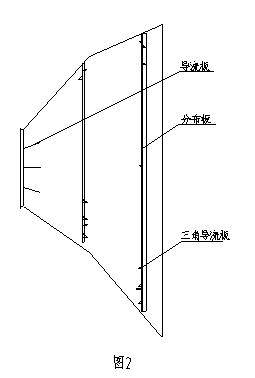 此外,如圖2所示,在進口處安裝三塊導流板,并且按一定的角度布置,同時將分布板孔設計為Φ85mm的圓孔,并在分布板上安裝與水平面呈45o的三角導流板,這樣的氣流分布裝置更有助于氣流的均布。