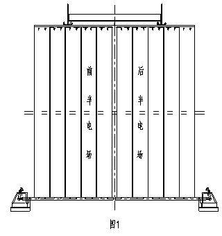 (1)將原來的長陽極排一分為二,改成兩個短陽極排后,既能保證極間距不變,使電場有效運行電壓不降低,又可以使原陽極排前后部分振打周期得以協調,進而提高陽極排前半部和后半部收塵面積的有效利用率。采用雙側振打,前后振打時互不干擾,前半部振打時產生的二次揚塵,后半部仍能收集,從而大幅度地提高了收塵效率,使一個電場在工況運行時起到超過一個電場的作用。