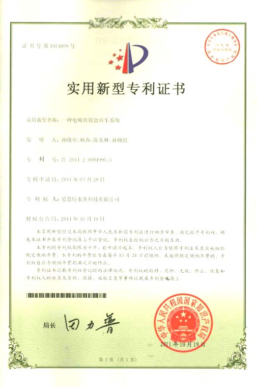 電吸附除鹽技術被收錄《國家鼓勵發展的環境保護技術名錄》