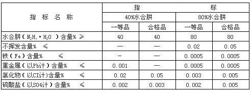 性能與用途:本品是一種脫氧劑,它能使水中的溶解氧還原,被用于進一步去除鍋爐給水經熱力除氧后的殘留微量溶解氧。因為給水中溶解氧會引起鍋爐管壁的腐蝕。向鍋爐給水加入水合肼,不但能脫氧,還能防止鍋爐內鐵垢和銅垢的生成。執行標準:ZB G14001-90。