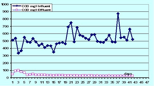 圖 5: 生物量的調試階段和COD去除率 |