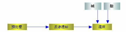 *目前常(chang)用(yong)工藝(yi)(水中大部份(fen)鹽(yan)用(yong)反滲透(tou)方式除去,但仍(reng)然需要酸(suan)堿對混合(he)離子交(jiao)換床(chuang)的離子交(jiao)換樹脂進行再生(sheng))