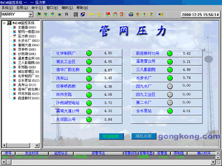 在調度室監控計算機可通過畫面和曲線實現對現場的監測。供水調度人員可以根據采集的數據進行水廠的生產調度和指揮。還可打印各種報表。