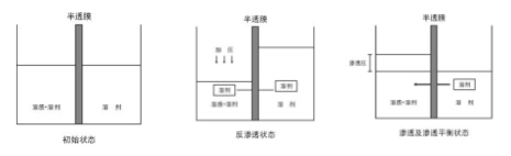 反(fan)滲(shen)(shen)(shen)透(tou)(tou)亦稱逆(ni)滲(shen)(shen)(shen)透(tou)(tou)(RO)。是(shi)用(yong)一定的(de)壓力使(shi)溶液中的(de)溶劑通過反(fan)滲(shen)(shen)(shen)透(tou)(tou)膜(或稱半(ban)透(tou)(tou)膜)分離出來。因為它和(he)自然滲(shen)(shen)(shen)透(tou)(tou)的(de)方向相反(fan),故稱反(fan)滲(shen)(shen)(shen)透(tou)(tou)。根據(ju)各種物料的(de)不同滲(shen)(shen)(shen)透(tou)(tou)壓,就可(ke)以使(shi)大于滲(shen)(shen)(shen)透(tou)(tou)壓的(de)反(fan)滲(shen)(shen)(shen)透(tou)(tou)法(fa)達到(dao)分離、提取、純化和(he)濃縮的(de)目(mu)的(de)。