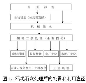 脫水污泥石灰處理是脫水污泥進一步處理中最早得到應用的方法之一,由于工藝簡單,能耗低等原因,至今仍是污泥處理處置中一個常用的手段。較為經典的應用分別是利用加入氧化鈣后pH和溫度的升高來實現污泥的殺菌;或利用添加氧化鈣及其他物質(如飛灰、水泥、碳酸鈣等)后污泥的固化效果來滿足污泥的填埋工藝要求。另外,處理過程中選擇適宜的混合條件可有效改變污泥的性質,由致密、粘稠變成疏松、流動性能好、便于儲存和運輸的物料。