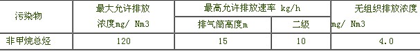處理后的廢氣氣體達到《大氣污染物綜合排放標準》(GB16297—1996)表2中的相關標準,主要指標見下表: