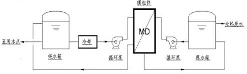 采用(yong)楓科最新研發的(de)(de)(de)(de)(de)疏(shu)(shu)水(shui)(shui)(shui)性PVDF微孔膜(mo),以膜(mo)兩側的(de)(de)(de)(de)(de)蒸(zheng)汽(qi)壓力(li)差為驅(qu)動力(li)的(de)(de)(de)(de)(de)膜(mo)分離過(guo)程。水(shui)(shui)(shui)的(de)(de)(de)(de)(de)飽和蒸(zheng)汽(qi)壓隨溫度的(de)(de)(de)(de)(de)指數關系增加。將不同溫度的(de)(de)(de)(de)(de)水(shui)(shui)(shui)引入(ru)膜(mo)的(de)(de)(de)(de)(de)兩側,由(you)于膜(mo)的(de)(de)(de)(de)(de)疏(shu)(shu)水(shui)(shui)(shui)性,兩側的(de)(de)(de)(de)(de)溶(rong)(rong)液(ye)相(xiang)均不能透(tou)過(guo)膜(mo)。但由(you)于高溫側水(shui)(shui)(shui)溶(rong)(rong)液(ye)與膜(mo)界(jie)面的(de)(de)(de)(de)(de)水(shui)(shui)(shui)蒸(zheng)汽(qi)壓高于低溫側,水(shui)(shui)(shui)蒸(zheng)汽(qi)會從(cong)高溫側透(tou)過(guo)膜(mo)孔進入(ru)低溫側并冷凝成為滲(shen)出水(shui)(shui)(shui),留在高溫側的(de)(de)(de)(de)(de)溶(rong)(rong)液(ye)則得到濃縮,成為滲(shen)余液(ye)。