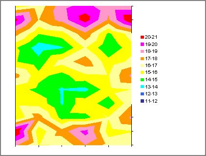 圖 1: 使用標準葉片時SCR速度分配 (CFD模擬結果) 圖 2: 使用GSG時SCR速度分配(CFD模擬結果(guo)) 圖 3: 使用傳統葉片時催化劑表面的速度測量 圖 4: 使用GSG時催化劑表面的速度測量 |
