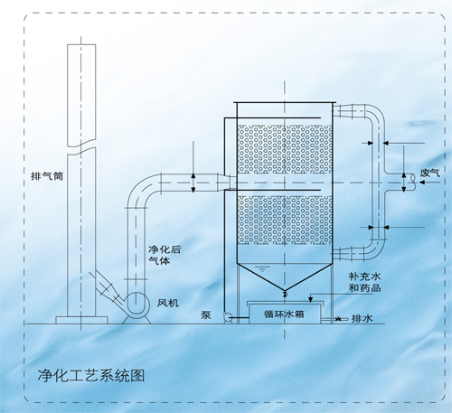 生物法的凈化揮發性有機廢氣包括以下過程,VOCs從氣相傳遞到液相;VOCs從液相擴散到生物膜表面; VOCs在生物膜內部的擴散;生物膜內的降解反應;代謝產物排出生物膜。在上述的五個過程中,前四個過程對于污染物的去除都很重要,最后一個過程則對污染物的去除影響較小,一般可以忽略。生物膜內的降解反應是最為重要的,因為它是氣液相傳質及液膜和生物膜內擴散的源動力。因此,微生物對污染物降解的難易程度對生活法的凈化效果有很大的影響。一般而言,微生物對于甲苯、二甲苯、甲醇、乙醇、丁醇、四氫呋喃、甲醛、乙醛、丁酸、三甲胺等的降解最為容易,因此,凈化效率也較高;對于苯、苯乙烯、丙酮、乙酸乙脂、苯酚、二甲基硫、噻吩、甲基硫醇、二硫化碳、酰胺類、吡啶、乙腈、異腈類、氯酚等的降解也較為容易,因此采用生物法凈化含有上述污染物的廢氣也能獲得較為理想的凈化效率;而對于甲烷、戊烷、環已烷、乙醚、二 烷、二氯甲烷及1,1,1一三氯甲烷等物質,其可生物降解性較差,則不宜采用生物法。目前,該技術的發展趨勢就是對于特定的污染物,篩選和馴化出高效的降解菌種,從而提高凈化效率,減小設備體積。到目前為止,我們已經進行了甲苯、苯;二甲苯和氯苯廢氣的生物凈化的研究。已通過實驗研究篩選選出幾種高效的生物濾塔填料,并篩選出一株二甲苯的高效降解菌。實驗取得了較好的結果,當氣體停留時間在17.0s~97.5s的范圍內,氣體入口中污染物的濃度低于3000mg/m3的情況下,凈化效率可達80%~99.9%。甲苯、苯、二甲苯和氯苯均為水溶性較差的化合物,因此對于易溶于水的污染物,凈化效果會更好。如果用于氣體除臭,則氣體停留時間可以進一步降低。