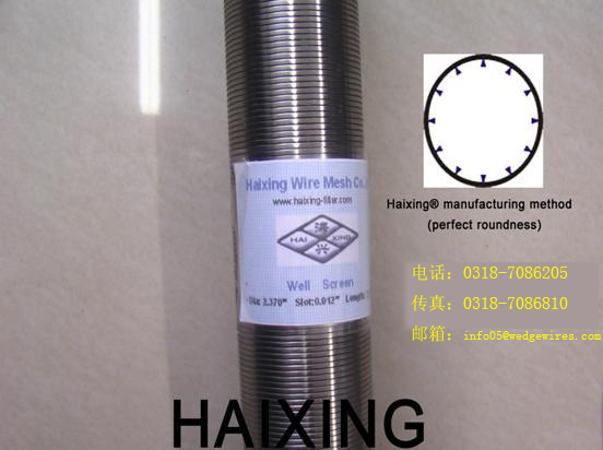 衡水開發區海興濾材廠生產的全焊式繞絲篩管可廣泛應用于油、氣、水井防沙,化工,環保工業中,其在水處理工業中的地位尤其突出,是各種水資源及收集樹脂過濾篩管中應用最為廣泛的一種。我們公司的篩管采用目前世界最先進的歐式全繞焊生產工藝。最小縫隙可做到0.025mm,是真真的圓管。
