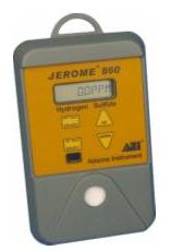 Jerome 860的主機是一塊耐用的電化學傳感器,當按下采樣鍵時,儀器的內置氣泵把空氣抽入儀器中,空氣中所有的H2S都會吸附在儀器內置的電化學傳感器上,傳感器的電阻值按正比例產生改變,然后通過計算,得到樣品中H2S的濃度。