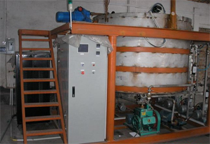 1)CMBR振動(dong)膜(mo)(mo)(mo)分離(li)及超聲波在線清洗(xi)系統:廢(fei)油(you)(you)水經雜物籃粗網予處理后(hou)(hou)進入廢(fei)油(you)(you)水調(diao)節池,然后(hou)(hou)廢(fei)油(you)(you)水經油(you)(you)泵打入振動(dong)膜(mo)(mo)(mo)油(you)(you)污分離(li)槽,經真空機(ji)自吸及通(tong)過0.05UM微濾(lv)膜(mo)(mo)(mo)過濾(lv)后(hou)(hou)產(chan)出凈(jing)化油(you)(you)達到澄清透明排出,濾(lv)膜(mo)(mo)(mo)工(gong)作一段時間后(hou)(hou),壓力由0.05Mpa升高到0.5Mpa時,傳感器通(tong)過PLC微電腦反饋(kui)信號,自動(dong)啟動(dong)超聲波進行在線振動(dong)定時清洗(xi),保證膜(mo)(mo)(mo)的(de)通(tong)量穩定。