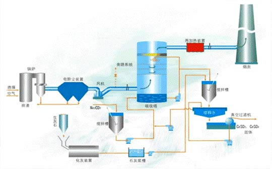 目(mu)前 TFGD 在雙(shuang)堿工(gong)藝(yi)方面使(shi)用較多(duo),其工(gong)藝(yi)流程簡圖如下: