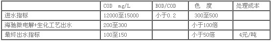 經(jing)過海(hai)(hai)馳技術預處(chu)理(li)的生化工(gong)(gong)藝出(chu)水可達到(dao)COD 300 mg/L以(yi)內,經(jing)海(hai)(hai)馳催(cui)化降解處(chu)理(li)單元后,最終出(chu)水COD值(zhi) 100—150mg/L,色度為50—80倍,完全達到(dao)《國家制藥(yao)工(gong)(gong)業水污染(ran)物排(pai)放標準》(征求(qiu)意見稿(gao))要求(qiu),接(jie)近國家一級(ji)直(zhi)排(pai)標準。