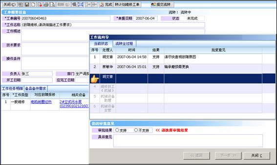 WaterPro通過對(dui)實時運(yun)行數據的(de)(de)監視,及時獲得(de)關鍵設(she)(she)備的(de)(de)運(yun)轉(zhuan)情(qing)況,自動派發養護、檢(jian)修工單(dan)(dan),實現了狀(zhuang)態檢(jian)修和計劃檢(jian)修的(de)(de)有機結(jie)合。WaterPro將嚴謹(jin)科(ke)學的(de)(de)質(zhi)量管理思想納入設(she)(she)備維(wei)修體(ti)系,建立完善(shan)的(de)(de)故(gu)(gu)(gu)障管理和維(wei)修調度流程,從故(gu)(gu)(gu)障記錄、工單(dan)(dan)派發、驗收、故(gu)(gu)(gu)障原因分析(xi)到費(fei)用核算,進行全過程規范(fan)化(hua)管理。其中故(gu)(gu)(gu)障分類(lei)統(tong)計、設(she)(she)備完好率(lv)分析(xi)等功能為持續改善(shan)設(she)(she)備維(wei)護和采(cai)購工作提供了有力的(de)(de)支持。