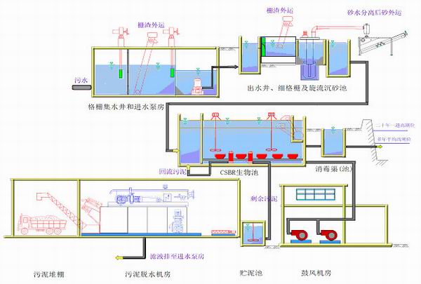 我公司多年從事城市污水處理,擁有很強勁的技術,同時擁有一系列獨自開發的產品。到目前為止,在城市污水處理領域,應用純熟的、歷史悠久的、成績卓越的二級污水處理技術包括CSBR、氧化溝、A2/O、AB法等。現對幾種技術分別闡述如下: