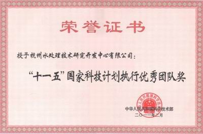來源:杭州水處理中心市場部 閱讀:1764 更新時間:2011-03-09 10:29近日,喜訊從杭州傳來,杭州水處理中心榮膺“十一五”國家科技計劃執行優秀團隊獎。