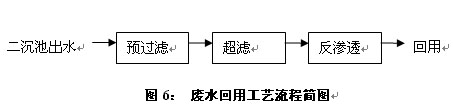 造紙(zhi)廢水(shui)(shui)一(yi)般含(han)懸(xuan)浮(fu)物(wu)較多,碎(sui)的(de)纖維(wei)狀懸(xuan)浮(fu)物(wu)極易(yi)堵(du)塞微濾(lv)及(ji)更細(xi)的(de)膜(mo)。為避免廢水(shui)(shui)污物(wu)堵(du)塞膜(mo),減少(shao)清洗難度和(he)頻(pin)率,在(zai)工(gong)(gong)(gong)程項目應用(yong)(yong)中(zhong)嚴格控制進(jin)水(shui)(shui)的(de)懸(xuan)浮(fu)物(wu)量,通(tong)常采用(yong)(yong)常規物(wu)化和(he)生(sheng)化處(chu)理(li)的(de)二沉(chen)池出水(shui)(shui)作為膜(mo)法處(chu)理(li)工(gong)(gong)(gong)藝(yi)的(de)進(jin)料液(ye),放流水(shui)(shui)水(shui)(shui)質:pH為7~8,COD在(zai)80--150mg/L左右,SS為20~50mg/L,已達到國(guo)家一(yi)級排放標準(zhun)。放流水(shui)(shui)經預過(guo)濾(lv)后才(cai)能安全進(jin)入膜(mo)法處(chu)理(li)系統。超濾(lv)結(jie)合反(fan)滲透膜(mo)造紙(zhi)廢水(shui)(shui)回(hui)用(yong)(yong)工(gong)(gong)(gong)藝(yi)已成功應用(yong)(yong)于江蘇某(mou)紙(zhi)業(ye)公司(si)20000 m3/d放流水(shui)(shui)回(hui)用(yong)(yong)系統一(yi)期工(gong)(gong)(gong)程中(zhong)。工(gong)(gong)(gong)藝(yi)流程如圖(tu)6所示(shi)。