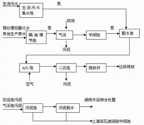 3. A池(chi)(chi)(chi)利(li)用(yong)兼氧菌(jun)的酸化(hua)水(shui)(shui)解作用(yong)破壞大(da)分(fen)子難(nan)降(jiang)解物質為易生(sheng)(sheng)化(hua)物質并(bing)去除(chu)部分(fen)COD,O池(chi)(chi)(chi)利(li)用(yong)好氧菌(jun)降(jiang)解絕大(da)部分(fen)可(ke)生(sheng)(sheng)化(hua)物質; A池(chi)(chi)(chi)控(kong)制水(shui)(shui)中溶(rong)氧0.2-0.4mg/l, O池(chi)(chi)(chi)溶(rong)氧控(kong)制2.0-5.0mg/l,池(chi)(chi)(chi)內(nei)通過(guo)掛膜提高生(sheng)(sheng)化(hua)處(chu)(chu)理效果;考(kao)慮廢水(shui)(shui)中有一定量的有機氮,池(chi)(chi)(chi)內(nei)設(she)污水(shui)(shui)回流泵,控(kong)制回流比為100-300%保證(zheng)COD去除(chu)效率,二沉池(chi)(chi)(chi)出水(shui)(shui)經標(biao)準(zhun)排(pai)放井(jing)達標(biao)排(pai)放,二沉池(chi)(chi)(chi)及氣浮池(chi)(chi)(chi)污泥一并(bing)進污泥池(chi)(chi)(chi)脫水(shui)(shui)處(chu)(chu)理。