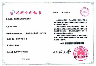 IOREX水處理器已獲得韓國專利、美國專利、中國專利、俄羅斯國家標準、韓國ISO9001:2000認證、美國FDA認證、中國生活飲用水檢測報告、國家鍋檢報告。