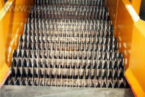 采用全(quan)新結構的(de)(de)(de)(de)圓(yuan)盤彈跳篩分(fen)機(ji)來代替滾筒篩設(she)(she)備(bei)。該設(she)(she)備(bei)不(bu)僅根(gen)據垃(la)圾(ji)尺寸進行分(fen)離,對大(da)塊的(de)(de)(de)(de)有(you)(you)機(ji)垃(la)圾(ji)還(huan)有(you)(you)攪動破碎功能。垃(la)圾(ji)通過彈跳篩時有(you)(you) 90%的(de)(de)(de)(de)有(you)(you)機(ji)物(wu)(wu)(wu)可(ke)(ke)以得到分(fen)離。垃(la)圾(ji)中的(de)(de)(de)(de)生(sheng)物(wu)(wu)(wu)有(you)(you)機(ji)物(wu)(wu)(wu)被篩分(fen)出來,即(ji)可(ke)(ke)減(jian)少(shao)填埋量,又(you)可(ke)(ke)防止生(sheng)物(wu)(wu)(wu)有(you)(you)機(ji)物(wu)(wu)(wu)對填埋堆體穩定性的(de)(de)(de)(de)不(bu)利影響。圓(yuan)盤篩動力電(dian)耗(hao)大(da)大(da)減(jian)小,節(jie)省能源,且設(she)(she)備(bei)占用空間少(shao),造價低,維修方便。