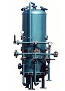 讓含有氧氣的水通過特制的海綿鐵濾料(潔明專利并制造),該濾料具有巨大的表面積,可使水中氧氣與鐵發生徹底的氧化反應,從而保證出水溶解氧量在0.05mg/l以下。反應生成物Fe(OH)3為松軟絮狀物,當其積累到一定程度后,即反洗排掉,恢復初始除氧能力。
