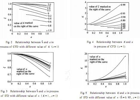 采用CFD操作模式時,不妨取c=1,設定不同的總收率ξ,據式(4)和式(8)可以得到體積增長率K與前濃縮比a的關系,如圖41當K<0時,a的取值范圍為a∈[-K,1]。由圖4可見,在相同濃縮比情況下,體積增長率是隨著總收率的增加而增加的。理想情況下,在前濃縮比和后濃縮比均為1,即直接對原始料液進行連續洗濾時,體積增長率為3.61即可使總收率達到0.99以上。