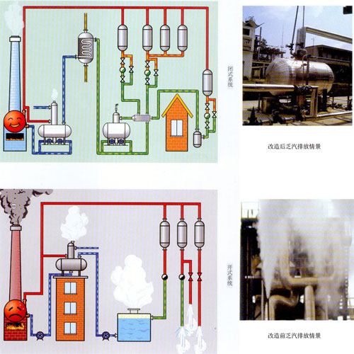 采用封閉式循環系統先進成套技術,改變原有熱力開式循環技術,通過凝結水回收器和低位熱力除氧器解決高溫凝結水回收和低溫乏汽回收,使鍋爐供汽系統根除跑冒直排,完全形成閉式循環,從而提高能源利用率20%-35%,提高水循環率20%-90%,最大限度地節水、節能、環保,并且有效的解決了水泵汽蝕—“泵癌”世界難題,徹底解決供汽鍋爐的高溫水回收和發電鍋爐乏汽回收的節能技術和環保技術。國家科技部列入《國家重大科技成果推廣項目》,2004被國家科技部、商務部、環保總局、質量監督檢驗檢疫總局聯合評為《國家重點新產品》。已列入我國“十一五”實施十大重點節能工程之一:“余熱余壓利用工程”。