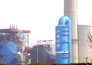 河南亞能天元電力有限公司2×220t/h鍋爐(2×50MW機組)脫硫及脫硫副產物回收工程,脫硫塔處理煙氣量56萬 Nm3/h。兩套脫硫系統共用一套副產物回收系統,2006年5月工程一次試車成功,2006年9月通過環保驗收。該工程由江南環保公司以BOT模式承包建設與裝置運行,是國內脫硫領域首例以BOT模式建設的工程,不但體現了氨法脫硫技術運行成本低的巨大優勢,也達到了業主方和承包方雙贏的效果。