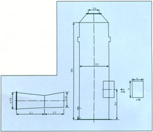 臺式水膜除塵器,由花崗巖(陶瓷)圓弧板砌筑構成,水膜面光滑圓順,垂直一體的內筒,外包碳鋼板,鋼板與花崗巖(陶瓷)圓弧板問由專用的耐酸膠泥粘接填實,形成一個整體結構。