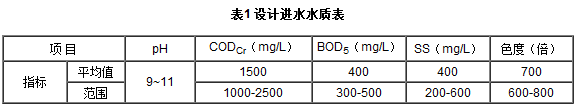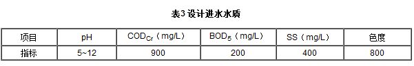 根據建設單位提供的廢水水質,確定設計進水水質見表1。
