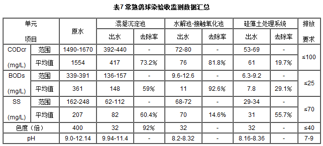 現將常熟市環境監測站于2004年10月10日和14日驗收監測數據匯總整理成表7,監測時的廢水排放量約為5000t/d,回用水量2000t/d左右,實際排放水量約為3000t/d。