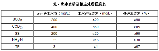 處理規模 | 進水水質 | 出水水質 | |||