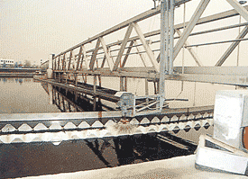 應用(yong)范圍:周邊(bian)傳動吸泥(ni)(ni)(ni)機是給排水工(gong)程中使用(yong)較多(duo)的(de)設備之(zhi)一,主要用(yong)于(yu)(yu)大型輻流式初沉(chen)池(chi)與(yu)二沉(chen)池(chi)的(de)排泥(ni)(ni)(ni),特別適用(yong)于(yu)(yu)比重(zhong)較輕的(de)生物污(wu)泥(ni)(ni)(ni)的(de)排除(chu),對(dui)水流擾動極小,排泥(ni)(ni)(ni)效果(guo)好。更有泥(ni)(ni)(ni)量調節(jie)閥調節(jie)出泥(ni)(ni)(ni)量,適應各(ge)種(zhong)條(tiao)件下的(de)正常出泥(ni)(ni)(ni),也可(ke)采用(yong)虹吸來控(kong)制排泥(ni)(ni)(ni)量。