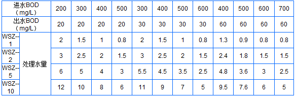 三、地埋式污水處理裝置不同條件下設備處理水量(m3/h)