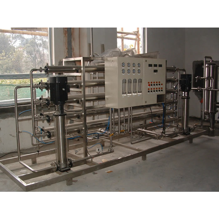 出水量范(fan)圍(wei)由0.5m3/h至(zhi)1000m3/h。反(fan)滲透(tou)壓力容器為不銹鋼或玻璃(li)鋼材質(zhi),反(fan)滲透(tou)膜采(cai)用低壓復合膜,脫鹽率達99%,運(yun)行壓力為1.3-2.0Mpa,視水溫及水質(zhi)而定。