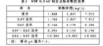 KDF與GAC聯合使(shi)用去(qu)除苯(ben)酚的相關試驗結(jie)果(guo)如表2?