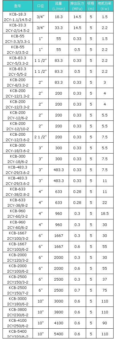 2CY適用于輸送不含固體顆粒和纖維,無腐蝕性,溫度不高于80℃,粘度為5×10-6~1.5×10-3m2/s (5-1500cst)的潤滑油或性質類似潤滑油的其他液體。