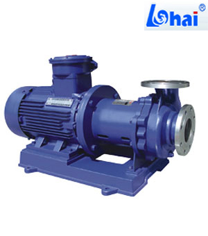 CQB磁力(li)驅動離心(xin)泵(簡稱磁力(li)泵(beng)),通常(chang)由電動機,磁力偶合器(qi)和耐腐蝕(shi)離心泵組成.其主要(yao)特點是利(li)用(yong)磁(ci)力(li)偶合(he)器(qi)傳遞動力(li),完全無泄(xie)漏,當電(dian)動機帶動磁(ci)力(li)偶合(he)器(qi)的外磁(ci)鋼旋轉(zhuan)時,磁(ci)力(li)線穿過問隙和隔(ge)離套,作(zuo)用(yong)于內(nei)磁(ci)鋼上,使磁力泵轉子與電動機同步旋轉,無機械接觸地傳遞扭矩.在泵軸的動力輸入端,由于液體被封閉在靜止的隔離套內,沒有動密封因而完全無泄漏.