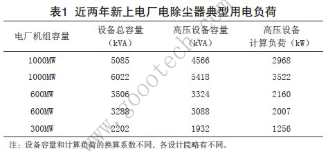 近年來,國內新上電廠電除塵器的設備容量情況為:百萬千瓦機組為5000~6000kW;60萬千瓦機組為3000~4000kW;30萬千瓦機組為2000~2500kW。電除塵器的耗電主要由高壓硅整流設備和電加熱系統兩部分組成,其中高壓系統的耗電約占電除塵器總耗電量的80%。近兩年新上電廠電除塵器典型用電負荷見表1。由表1可見,如果能大幅度降低電除塵器高壓硅整流設備的耗電,則電廠的效益顯著。