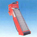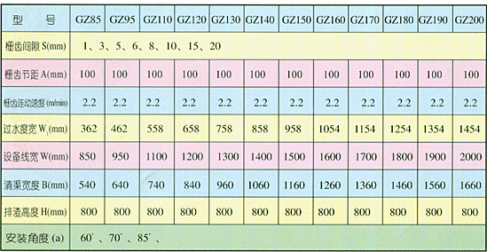 本除污機是由驅動裝置、機架、鏈輪、鏈條、耙齒組成。由鏈條帶動與鏈條相連的耙齒組成格柵。格柵不斷運動,將截留物質送到設備上部。當格柵改變運動方向時,使每組耙齒之間發生相對運動,將大部分固體雜物分離出來,靠自重落下。另一部分粘在耙齒上的雜物依靠清洗機構的橡膠刷作反向運動將其洗刷干凈。